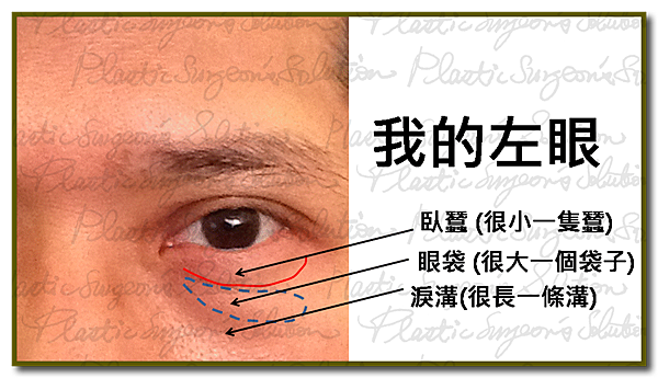 這下若是照客人意願開眼袋,會使臥蠶更深,若除去臥蠶,客人可能更不滿意(可以看看我的臥蠶手術文章)