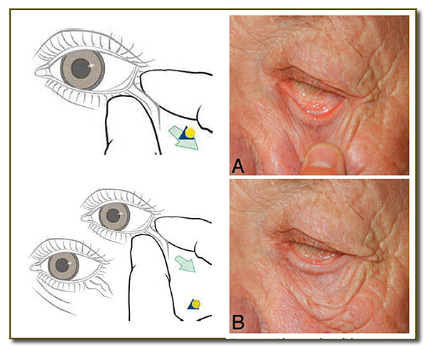 a. 側韌帶緊緻手術:將 下眼皮處的匝肌或韌帶拉緊,固定到外側眼眶內側的骨膜或韌帶,這個手術的目的是為了讓結構上鬆弛又脆弱的下眼皮變得較緊,避免下眼皮術後會有外翻的可能, 或者可矯正原本就有的下眼皮鬆弛狀況,作法多樣,可以適用在上眼皮同時施作的情況,也可以經由簡易的縫法(像縫雙眼皮的方法一樣,不留痕跡)來完成。同時可以讓下眼皮的皺紋稍減。